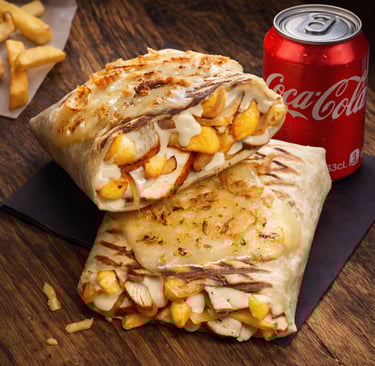 Compose ton tacos comme tu l’aimes : viandes au choix, sauces gourmandes et frites croustillantes pour un repas bien copieux et savoureux.