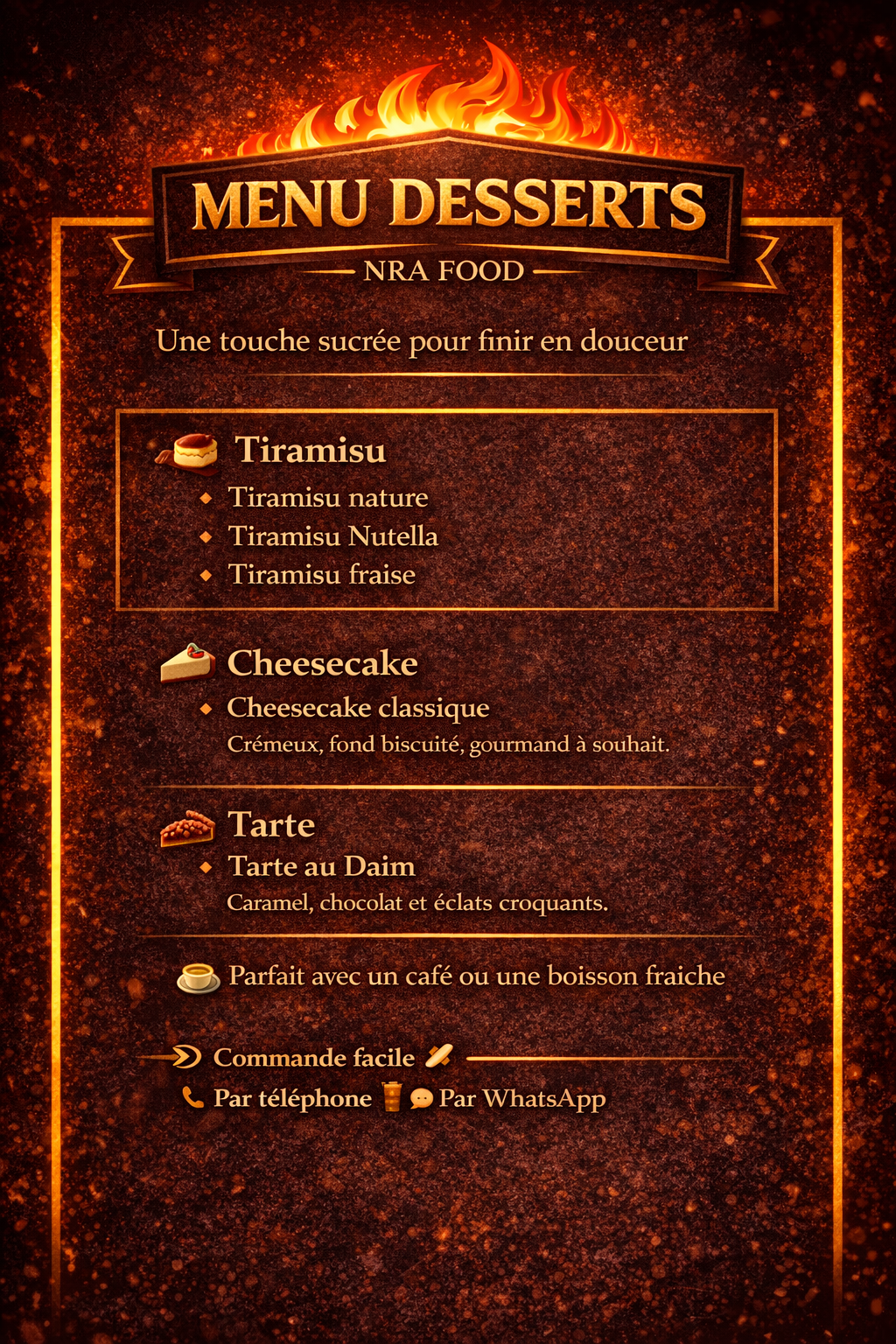 Sur place, à emporter ou en livraison, NRA FOOD est là quand la faim frappe.